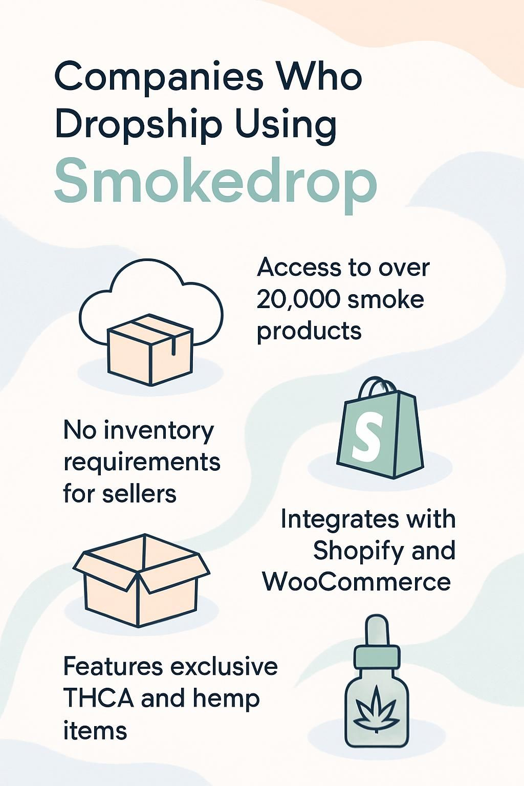 - Smoke shop owners, vape retailers, CBD sellers, and cannabis accessory businesses use SmokeDrop for dropshipping.