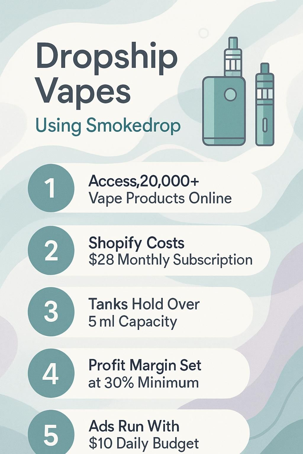 Dropshippers start their vape business by picking a solid platform â yeah, like Shopify, which keeps things simple and fun (who doesn’t love easy wins?). They add the SmokeDrop app next, linking it right to the store for quick product flow, and bam, you’re ready to sell vapes without the hassle…