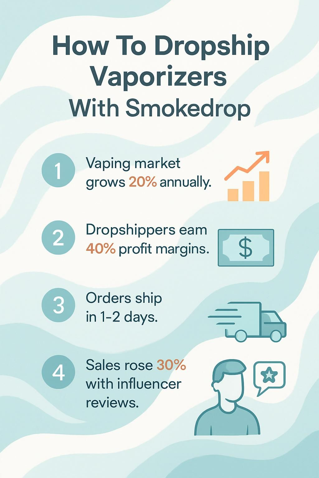 - The vaping market grows by 20 percent each year, giving big chances for dropshippers using SmokeDrop.